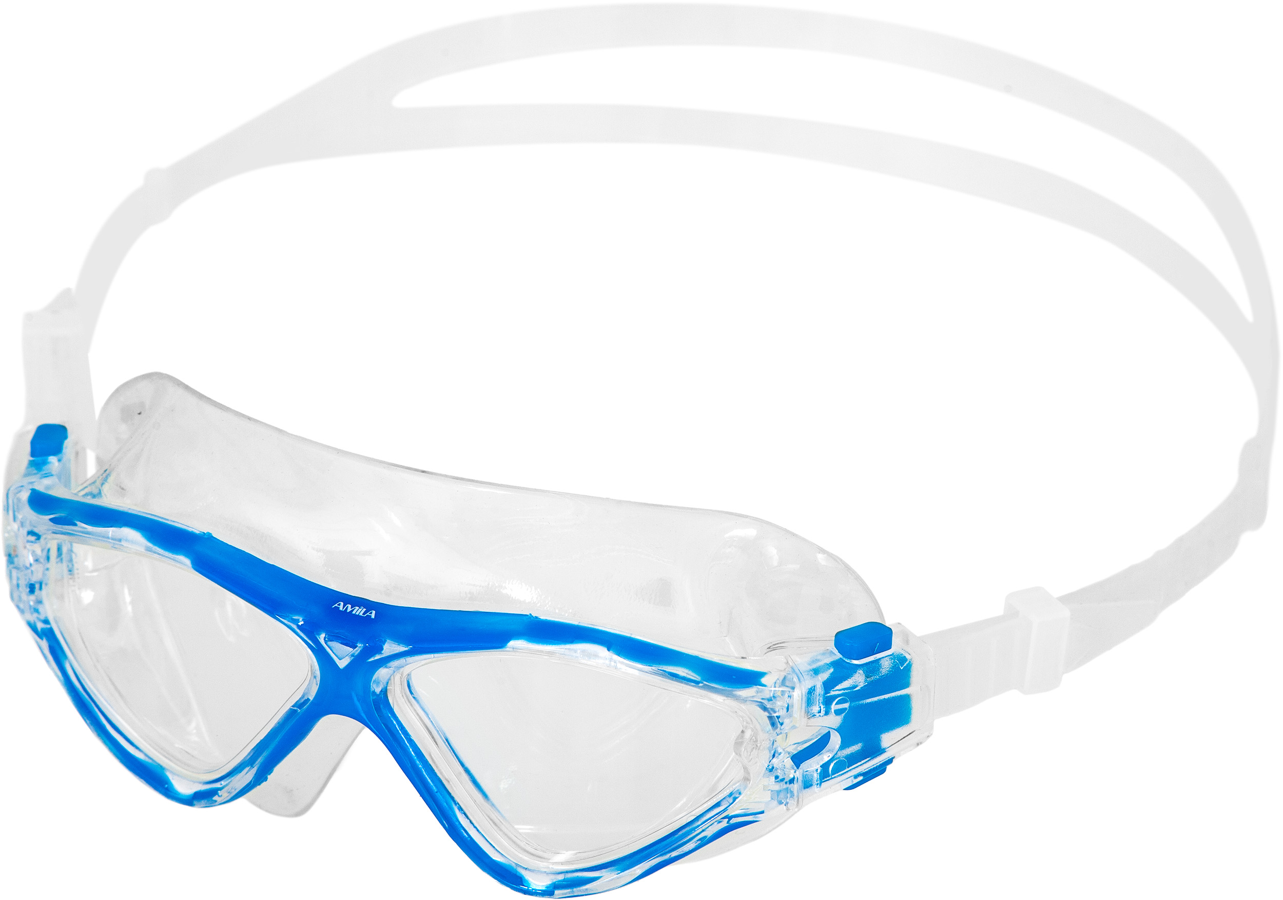 Γυαλιά κολύμβησης από την AMILA με λουράκι από σιλικόνη κατάλληλα για έφηβους/ενήλικους. Αυτός ο τύπος γυαλιού θυμίζει μάσκα, και θα μπορούσαμε να το χαρακτηρίσουμε κάτι σαν υβριδικό γυαλιά/μάσκα. Έχει την άνεση της μάσκας αλλά την φορητότητα των γυαλιών. Ο φακός του γυαλιού είναι διάφανος ενώ γύρω από το μάτι θα βρείτε σιλικόνη για την τέλεια εφαρμογή. Υπάρχει ρυθμιστής στο λουράκι για να μεγαλώνει ή να μικραίνει και να δένει σωστά στο κεφάλι σας χωρίς να μπαίνουν νερά ενώ παράλληλα να σας είναι άνετο χωρίς να σας πιέζει υπερβολικά. Το λουράκι πίσω είναι διπλό και ενώνεται προς τα μπροστά, με αυτό τον τρόπο θα μπορείτε να προσαρμόσετε ακόμα και το δέσιμο στο πίσω μέρος του κεφαλιού (ψηλά η χαμηλά).