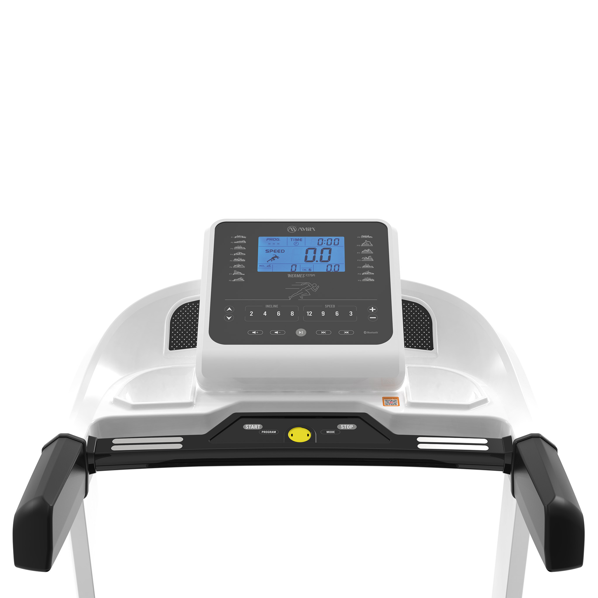 Η κονσόλα του Hermes F275PI σου δίνει τον πλήρη έλεγχο, με ευκρινή οθόνη LCD 7″ που εμφανίζει όλα όσα χρειάζεσαι για να παρακολουθείς την πρόοδό σου: χρόνο, απόσταση, παλμούς, θερμίδες, ταχύτητα, κλίση και ποσοστό σωματικού λίπους. Με 15 προεγκατεστημένα προγράμματα προπόνησης, μπορείς εύκολα να αλλάζεις επίπεδο και ρυθμό.