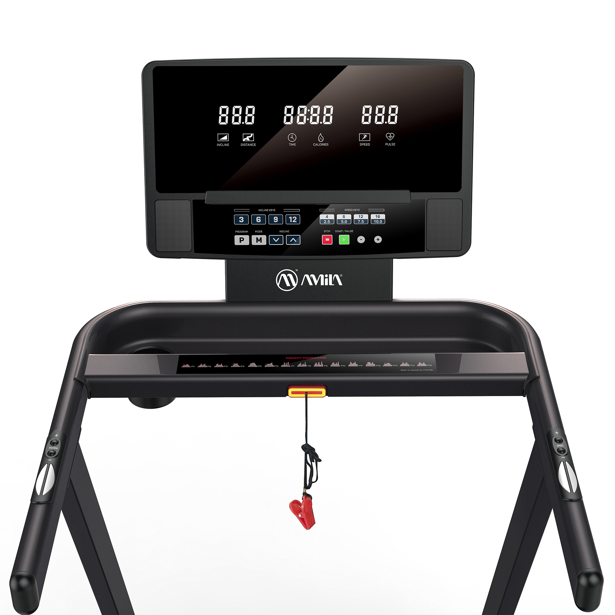 Εγγύηση ηλεκτρονικών μερών: 24 | Εγγύηση εργασίας: 12 | Εγγύηση πλαισίου: 36 | Εγγύηση λοιπών μερών: 24 | Εγγύηση μοτέρ: 24 | Ιπποδύναμη Μοτέρ (Hp): DC 2,00 | Μέγιστη Ταχύτητα (Km/hr): 16 | Ελάχιστη Ταχύτητα (Km/hr): 1 | Πλάτος Ιμάντα (cm): 42 | Μήκος Ιμάντα (cm): 125 | Μέγιστο Βάρος Χρήστη (Kg): 120 | Κλίση: Ηλεκτρική | Κλίση (%): 12 | Ράουλα Εμπρός (mm): 42 | Ράουλα Πίσω (mm): 42 | Μέγεθος – Τύπος Οθόνης: 3 Παράθυρα LED | Ενδείξεις: Ταχύτητα, Παλμούς, Χρόνος, Θερμίδες, Απόσταση, Κλίση | Προγράμματα: 36 προκαθορισμένα + 3 χρήστη + χειροκίνητο | Δάπεδο: 15mm | Χρήση USB (Μουσική, Δεδομένα): Οχι | Ενσωματωμένα Ηχεία: Ναι | Βάση Κινητού – Tablet: Ναι | Καρδιακοί Παλμοί: Αφής | Πάχος Ιμάντα (mm): 1,4 | Βάρος (Kg): 59 | Διαστάσεις (cm): 153,5×67,5×142 | Λίπανση: Με Σπρέι Σιλικόνης | Σύστημα Ανάρτησης: 6 Ελαστομερή | Bluetooth: Ναι | Θήκη Μπουκαλιού: Ναι