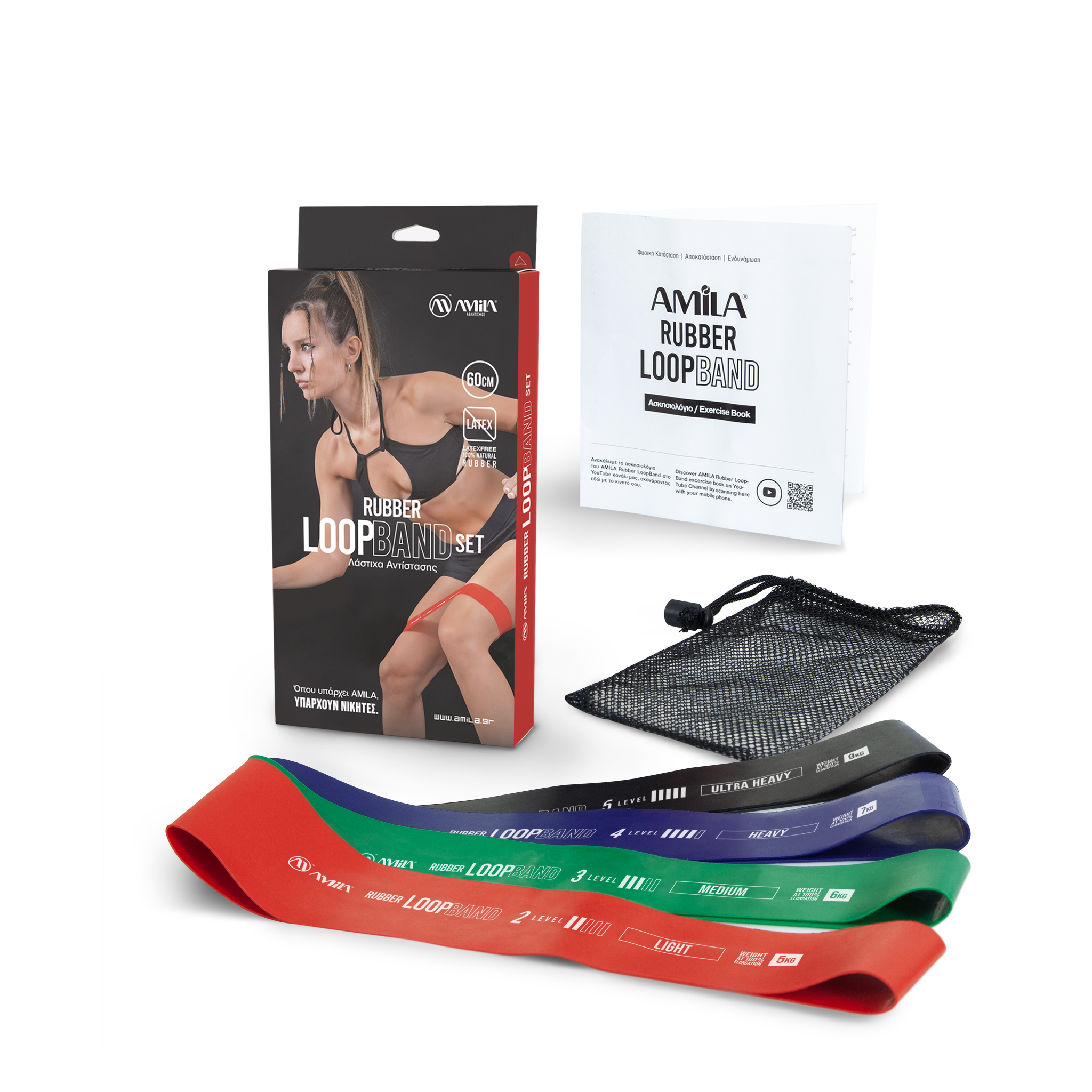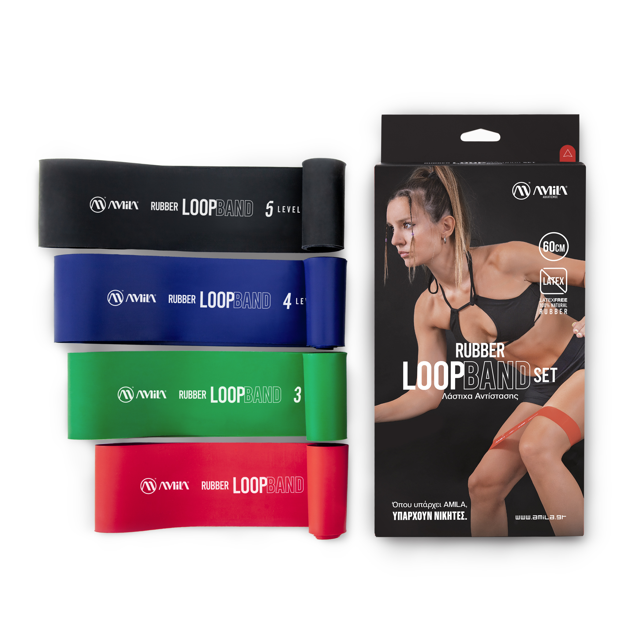 Σετ 4 AMILA Small Loop Band, από λάστιχο Latex Free, σκληρότητας Light, Medium, Heavy και Ultimate