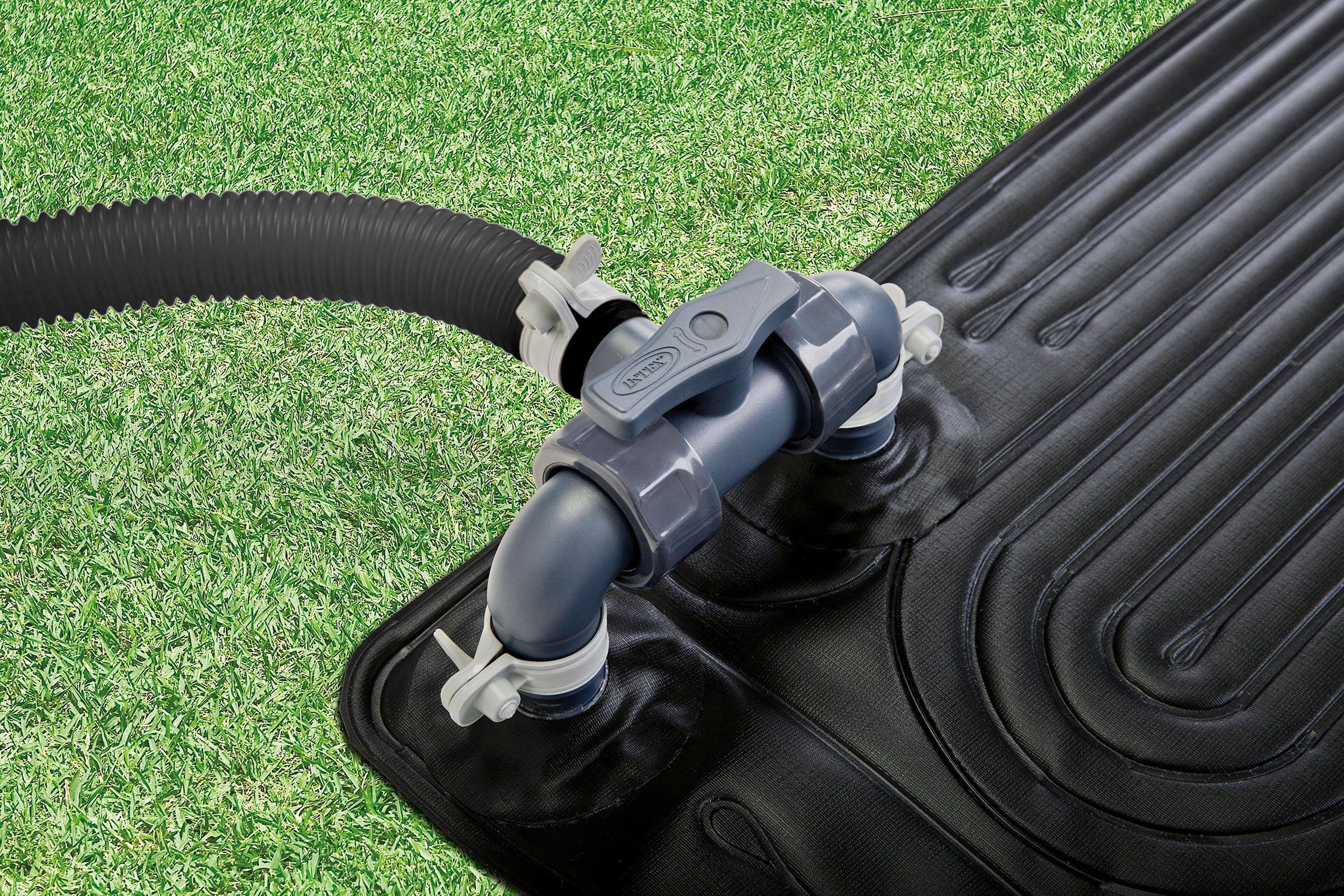 Το ηλιακό «χαλί» από την Intex θα σας βοηθήσει να θερμάνετε το νερό της πισίνας. Εκμεταλλευτείτε την ηλιακή ενέργεια, και βοηθήστε και εσείς σε έναν πιο «πράσινο» κόσμο. Σχεδιασμένο να δουλεύει με τις περισσότερες τρόμπες / φίλτρα νερού είναι το ιδανικό αξεσουάρ για να ζεσταίνετε το νερό της πισίνας