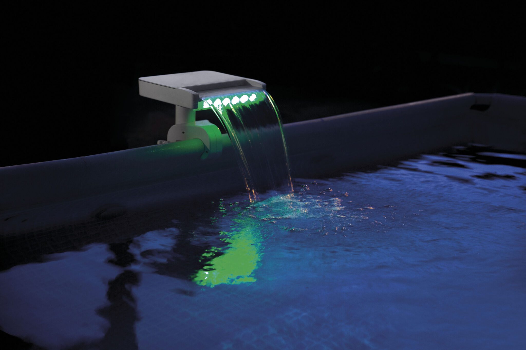 Προσθέστε μια λεπτομέρεια στην πισίνα INTEX® σας που θα σας φέρει ηρεμία. Φτιάξτε την κατάλληλη ατμόσφαιρα για ένα βραδινό μπάνιο στην πισίνα καθώς το φωτιστικό είναι εξοπλισμό με RGB LED. Εκτός όμως από την ατμόσφαιρα που προσφέρει το LED, το ανακάτεμα που προσφέρει ο καταρράκτης αναζωογονεί τα αρνητικά ιόντα στην επιφάνεια του νερού, προσφέροντας σας ηρεμία και χαλάρωση ενώ κολυμπάτε. Δεν χρειάζεται κάποια μορφή εξωτερικής ενέργειας καθώς έχει ενσωματωμένη υδροηλεκτρική γενήτρια. Απαιτείται αντλία ροής 3.785-12.112 λίτρων την ώρα. Το κουτί περιλαμβάνει και βάση στήριξης και όλο το bypass kit. Κατάλληλο για τις πισίνες Intex Metal Frame, Prism Frame™ και Ultra Frame®. Δεν είναι κατάλληλο για τις πισίνες Easy Set®, Oval Frame and Graphite Gray Panel® Pools.Λοιπά Χαρακτηριστικά:> 3 διαφορετικά χρώματα: κόκκινο, μπλε και πράσινο//